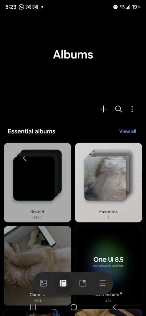 图库应用界面按钮更大,方便点击,专辑封面处会显示最新照片或视频预览,相册的显示方式也发生了变化。不再只是在纯色背景上显示相册名称,而是在顶部显示该相册中最新照片或视频的预览。